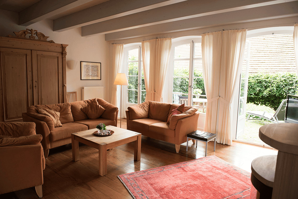 Ursprüngliche und regionaltypische Bauelemente wurden hier auf stilvolle Art und Weise mit moderner und hochwertiger Einrichtung kombiniert.